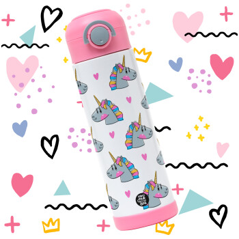 Unicorn, Easter candle, Childrens hot water bottle, stainless steel, with safety straw, PINK (500ml)