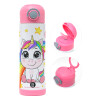 Unicorn baby με όνομα, Easter candle, Childrens hot water bottle, stainless steel, with safety straw, PINK (500ml)