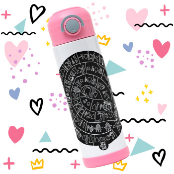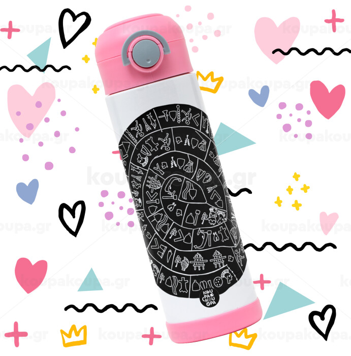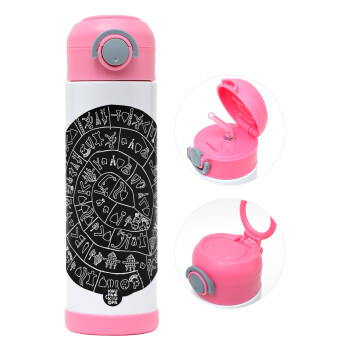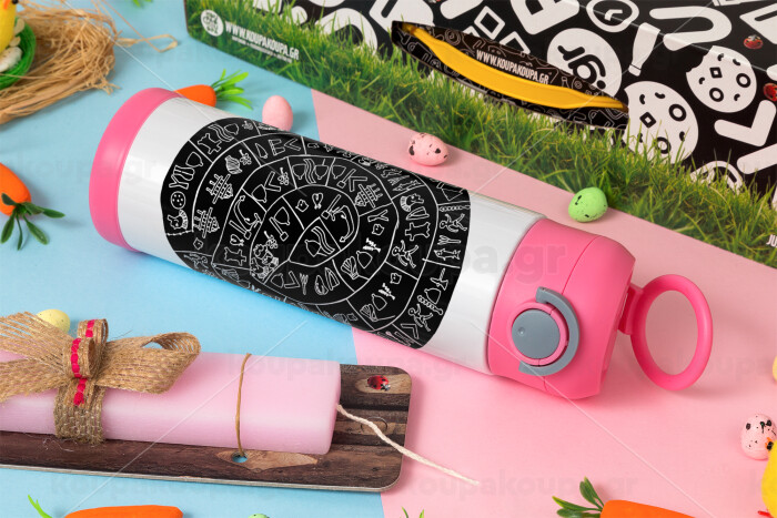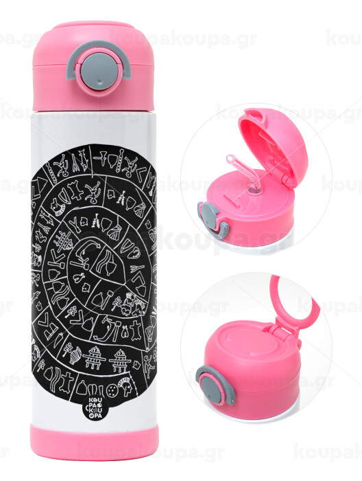 Δίσκος Φαιστού, Easter candle, Childrens hot water bottle, stainless steel, with safety straw, PINK (500ml)