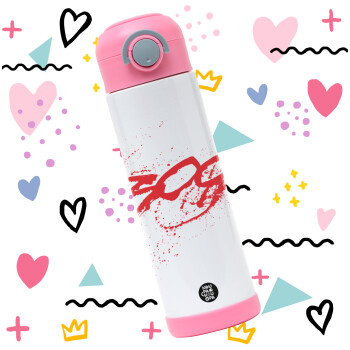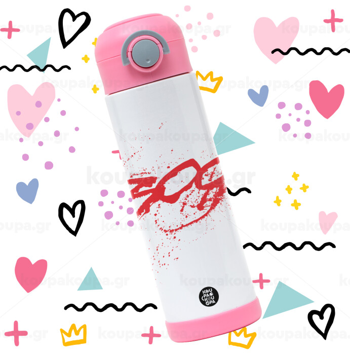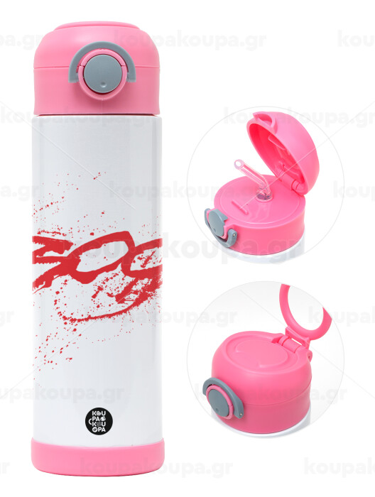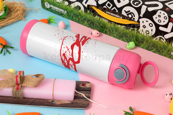 Οι 300 της Σπάρτης, Easter candle, Childrens hot water bottle, stainless steel, with safety straw, PINK (500ml)
