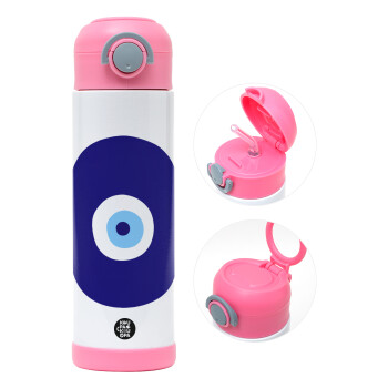 Χάντρα γαλαζιά, Easter candle, Childrens hot water bottle, stainless steel, with safety straw, PINK (500ml)
