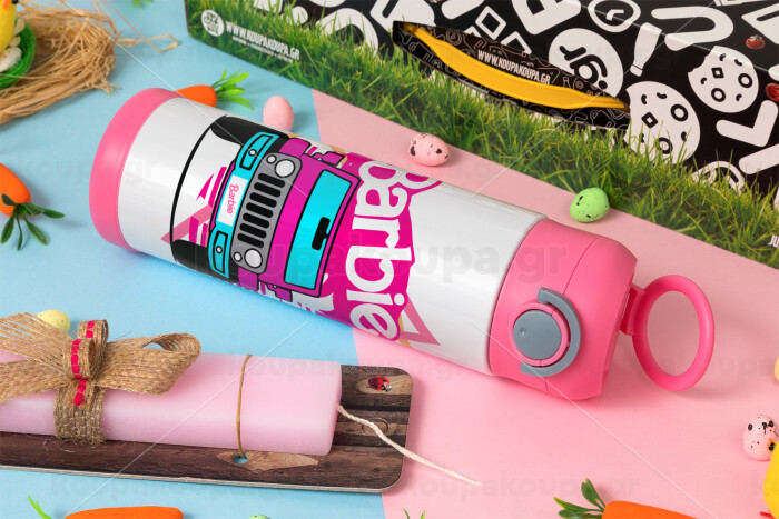 Barbie car, Easter candle, Childrens hot water bottle, stainless steel, with safety straw, PINK (500ml)