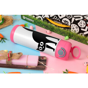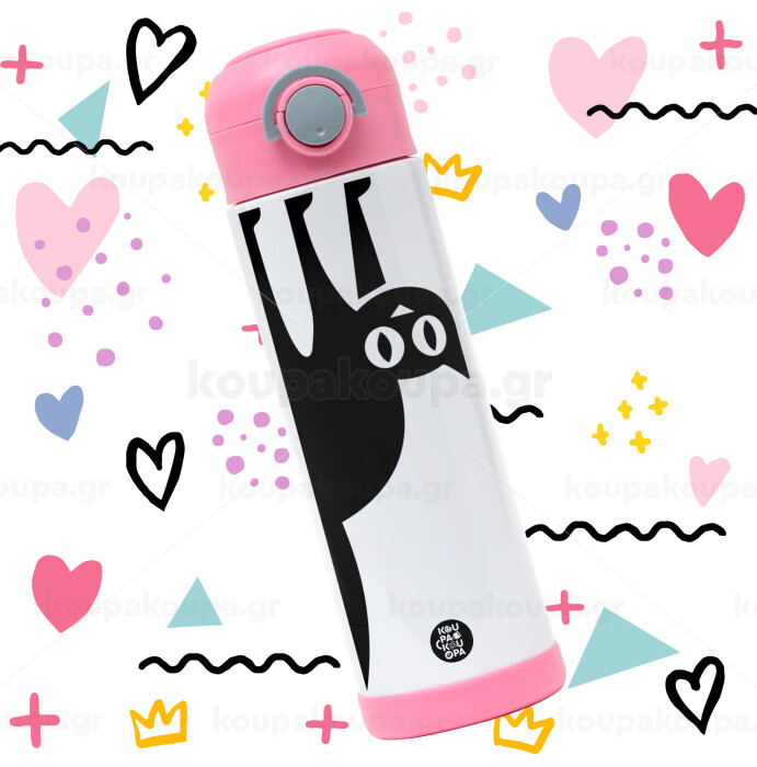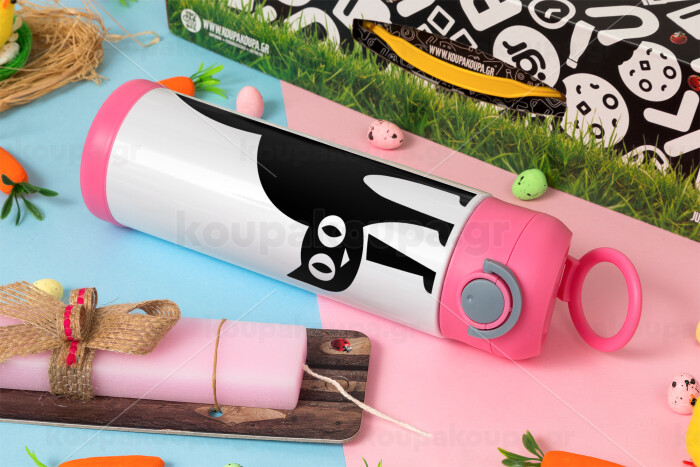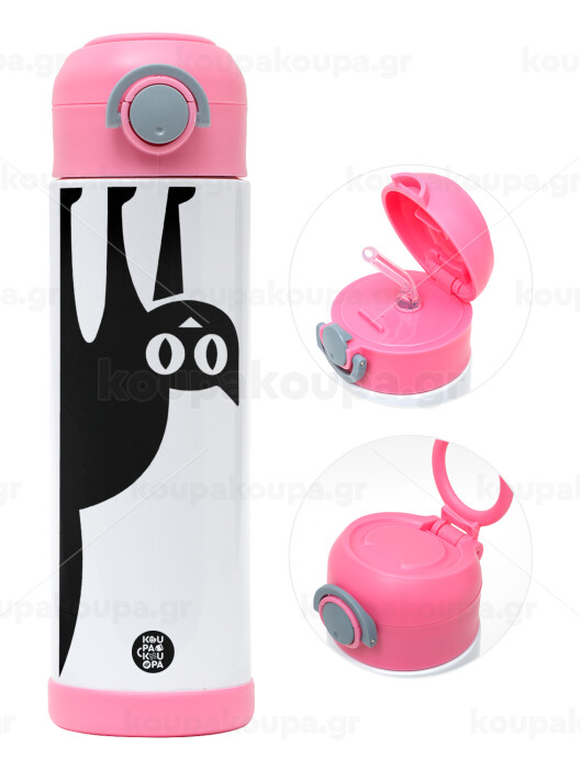 Cat upside down, Easter candle, Childrens hot water bottle, stainless steel, with safety straw, PINK (500ml)