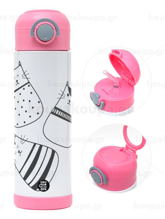 Cute cats, Easter candle, Childrens hot water bottle, stainless steel, with safety straw, PINK (500ml)