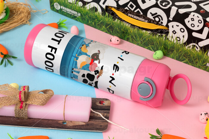 friends, not food, Easter candle, Childrens hot water bottle, stainless steel, with safety straw, PINK (500ml)