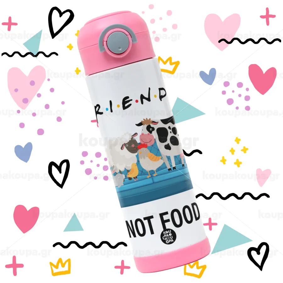 friends, not food, Easter candle, Childrens hot water bottle, stainless steel, with safety straw, PINK (500ml)
