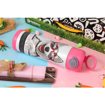 Warning, beware of Dog, Easter candle, Childrens hot water bottle, stainless steel, with safety straw, PINK (500ml)