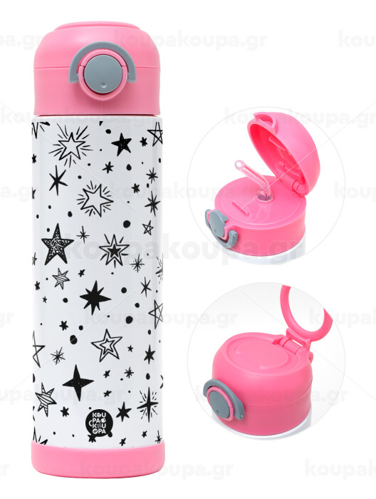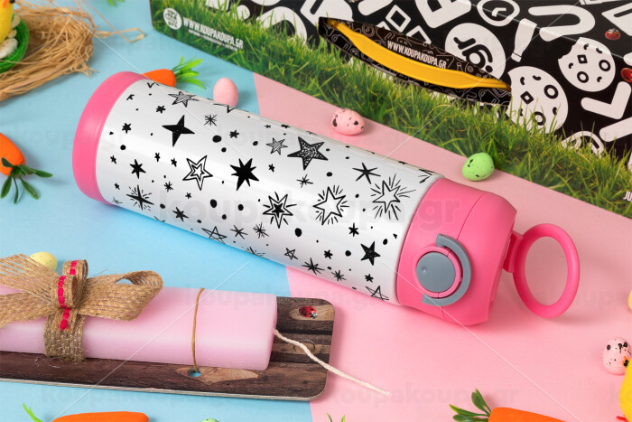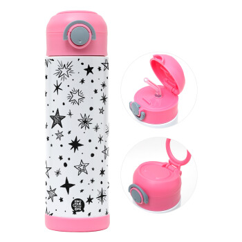 Doodle Stars, Easter candle, Childrens hot water bottle, stainless steel, with safety straw, PINK (500ml)