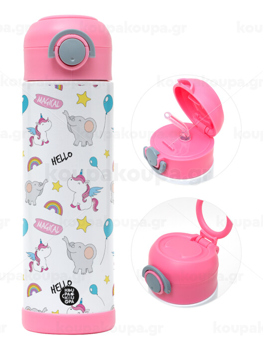 Ανοξείδωτο Θερμό Μπουκάλι για Παιδιά - Η Ασφαλής και Πράσινη Επιλογή! Τέλος τα πλαστικά μπουκάλια! Παρουσιάζουμε το απόλυτο μπουκάλι θερμό για τα παιδιά σας! Κατασκευασμένο από ανοξείδωτο ατσάλι, το μπουκάλι μας χωράει 500ml υγρό και είναι ιδανικό για το σχολείο και τις υπαίθριες δραστηριότητες. Με το απαλό άκρο, οι μικροί μας φίλοι μπορούν να πίνουν κατευθείαν από το μπουκάλι χωρίς καλαμάκι. Το ευρύ άνοιγμα του μας επιτρέπει να το καθαρίσουμε εύκολα για άψογη υγιεινή! Λαβή για εύκολη μεταφορά, καπάκι βιδωτό για ασφάλεια και λαβή για άνετο κράτημα. Επίσης, το μπουκάλι μας είναι BPA FREE, διατηρεί το πόσιμο δροσερό και δροσιστικό έξω από το ψυγείο. Κάντε την πράσινη επιλογή για τα παιδιά σας! Προμηθευτείτε το δικό σας ανοξείδωτο θερμό μπουκάλι τώρα!