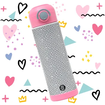 Doodle Maze, Easter candle, Childrens hot water bottle, stainless steel, with safety straw, PINK (500ml)