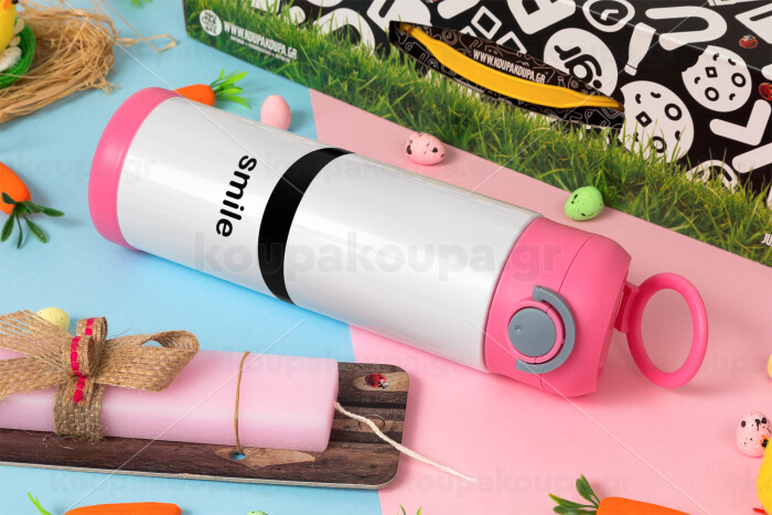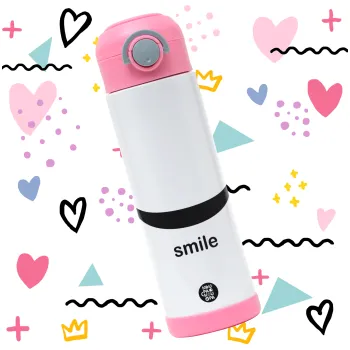 Smile!!!, Easter candle, Childrens hot water bottle, stainless steel, with safety straw, PINK (500ml)