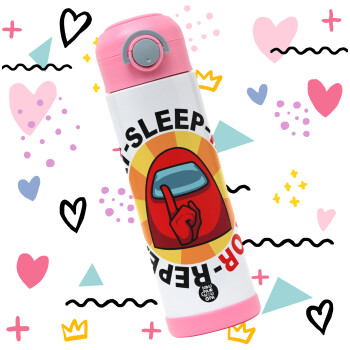 Among US Eat Sleep Repeat Impostor, Easter candle, Childrens hot water bottle, stainless steel, with safety straw, PINK (500ml)