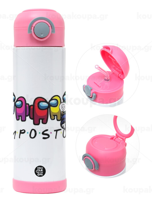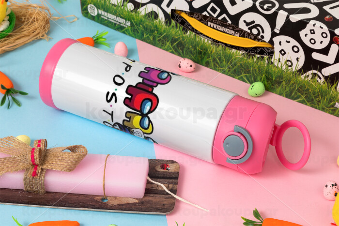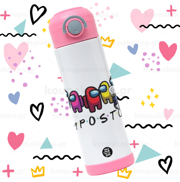 Among US impostor, Easter candle, Childrens hot water bottle, stainless steel, with safety straw, PINK (500ml)