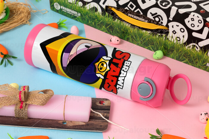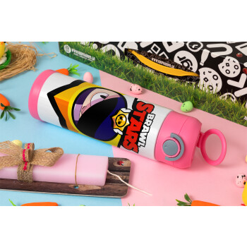 Brawl Stars Edgar, Easter candle, Childrens hot water bottle, stainless steel, with safety straw, PINK (500ml)