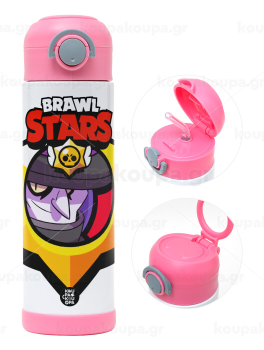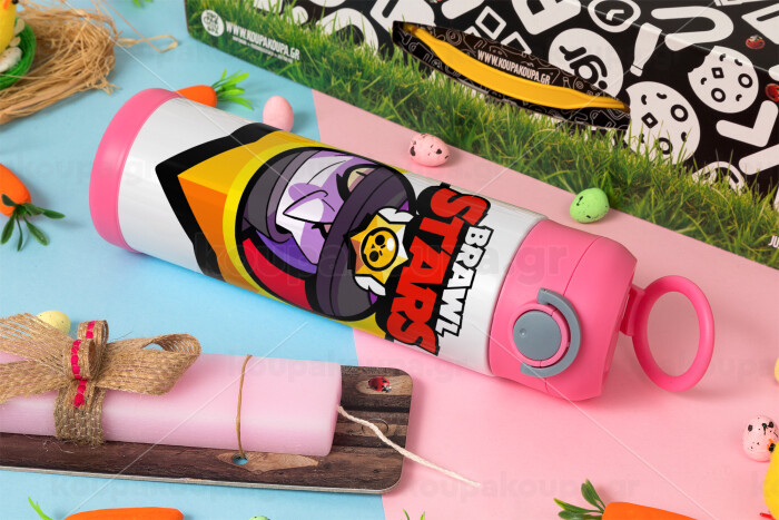 Brawl Stars Mortis, Easter candle, Childrens hot water bottle, stainless steel, with safety straw, PINK (500ml)