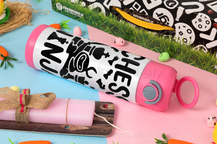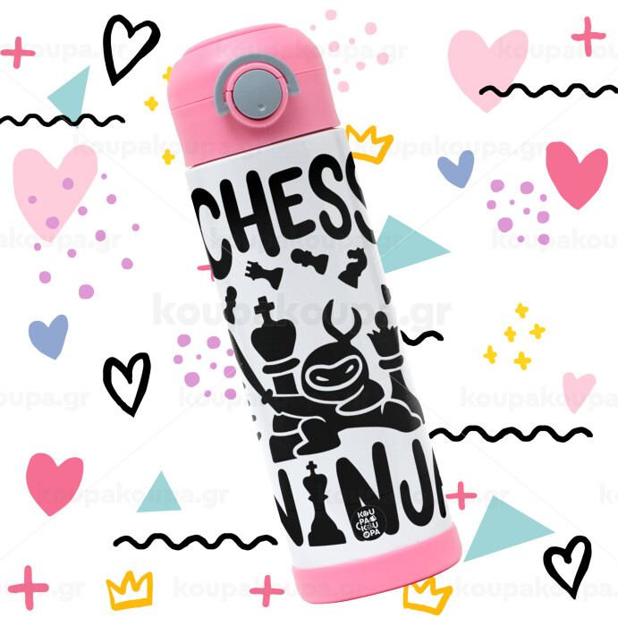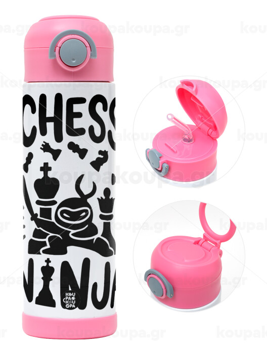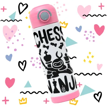 Chess ninja, Easter candle, Childrens hot water bottle, stainless steel, with safety straw, PINK (500ml)