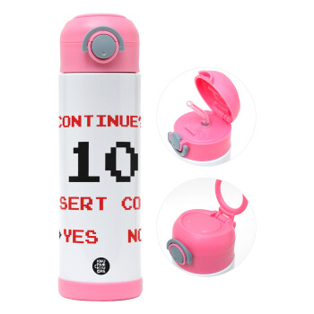 Continue? YES - NO, Easter candle, Childrens hot water bottle, stainless steel, with safety straw, PINK (500ml)