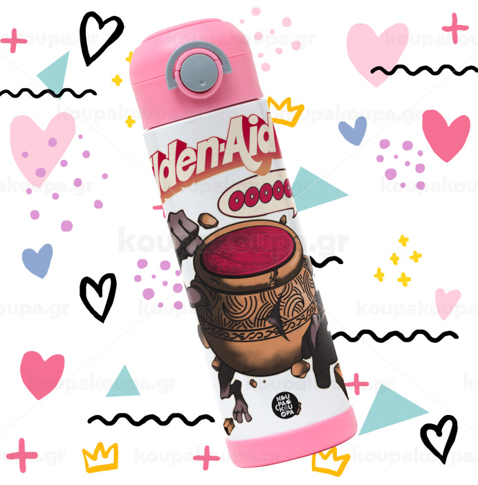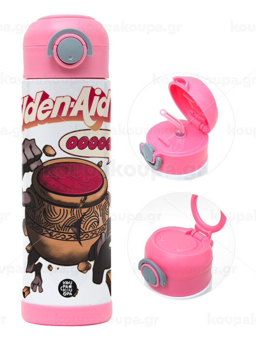 Elden-Aid, Elden Ring inspired , Easter candle, Childrens hot water bottle, stainless steel, with safety straw, PINK (500ml)