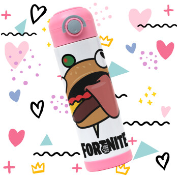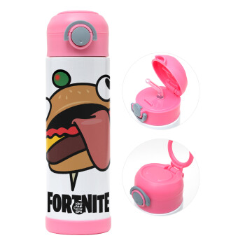 Fortnite Durr Burger, Easter candle, Childrens hot water bottle, stainless steel, with safety straw, PINK (500ml)
