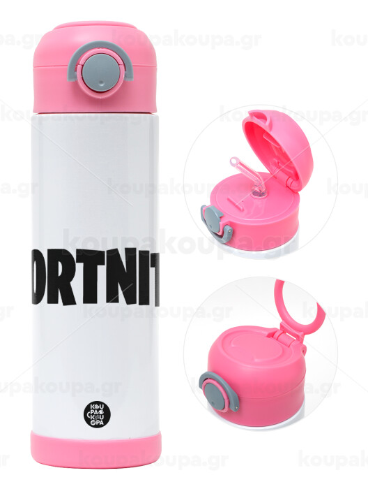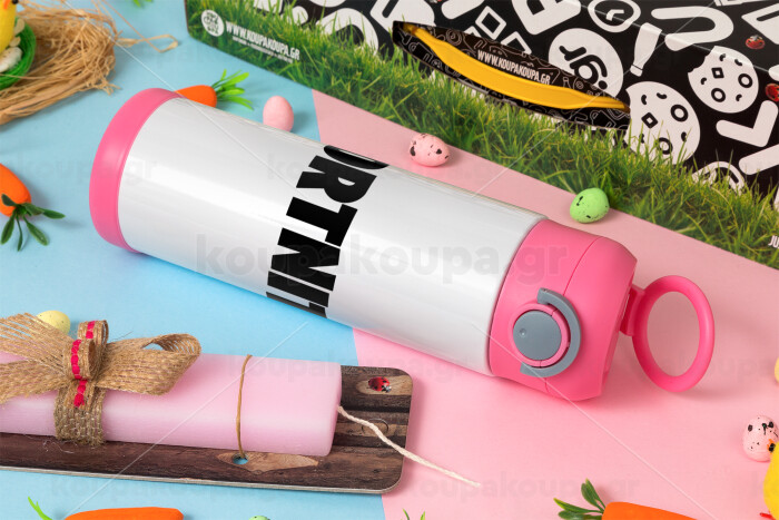 Fortnite landscape, Easter candle, Childrens hot water bottle, stainless steel, with safety straw, PINK (500ml)