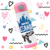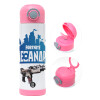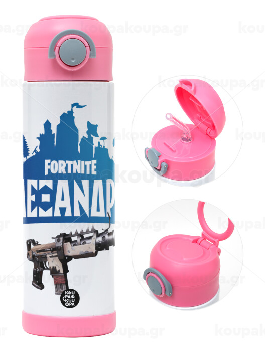 Fortnite with gun με το όνομα σου, Easter candle, Childrens hot water bottle, stainless steel, with safety straw, PINK (500ml)