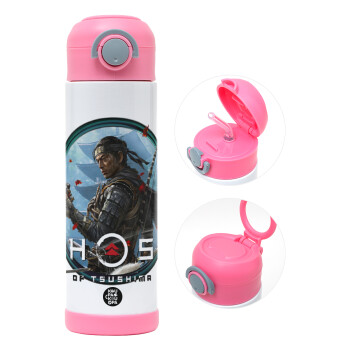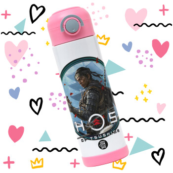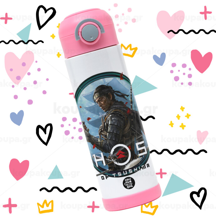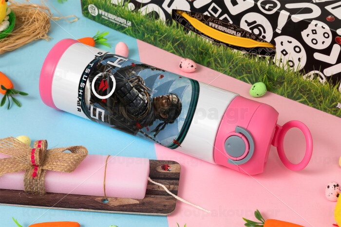 Ghost of Tsushima, Easter candle, Childrens hot water bottle, stainless steel, with safety straw, PINK (500ml)