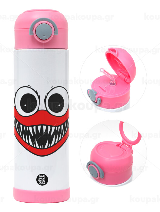 Huggy wuggy, Easter candle, Childrens hot water bottle, stainless steel, with safety straw, PINK (500ml)