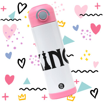 King chess, Easter candle, Childrens hot water bottle, stainless steel, with safety straw, PINK (500ml)
