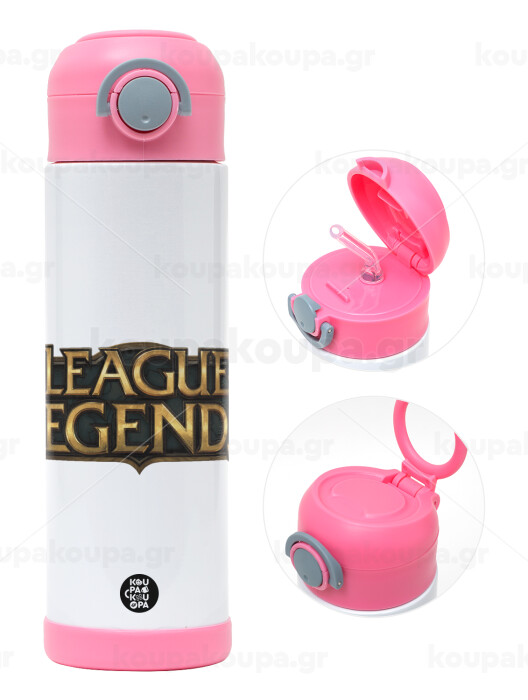 League of Legends LoL, Easter candle, Childrens hot water bottle, stainless steel, with safety straw, PINK (500ml)