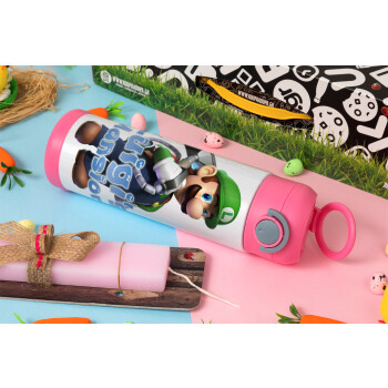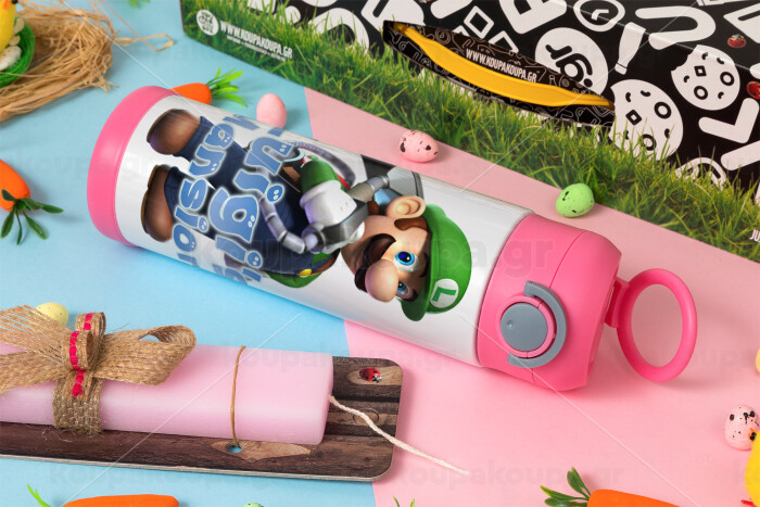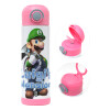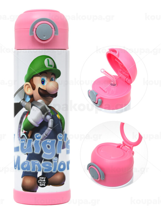 Luigi's Mansion, Easter candle, Childrens hot water bottle, stainless steel, with safety straw, PINK (500ml)