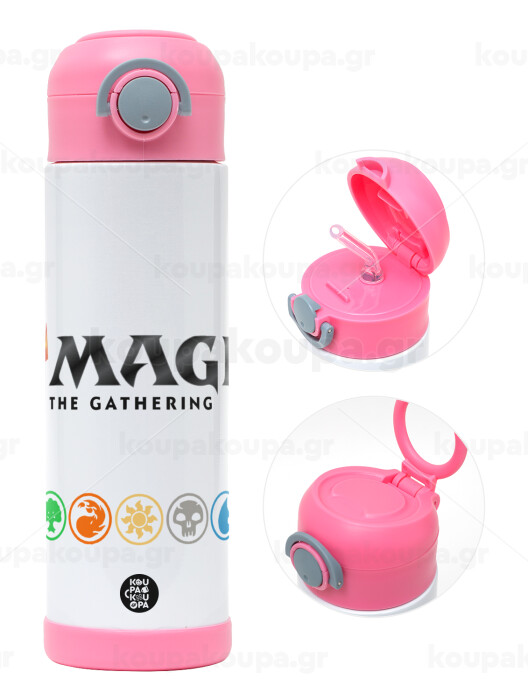 Magic the Gathering, Easter candle, Childrens hot water bottle, stainless steel, with safety straw, PINK (500ml)