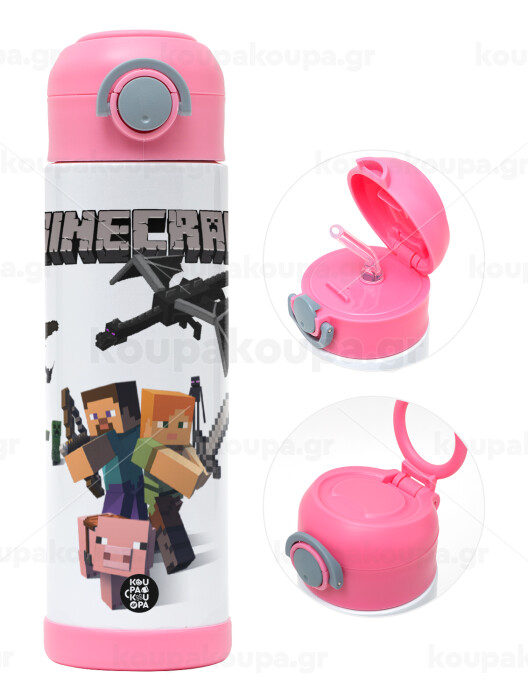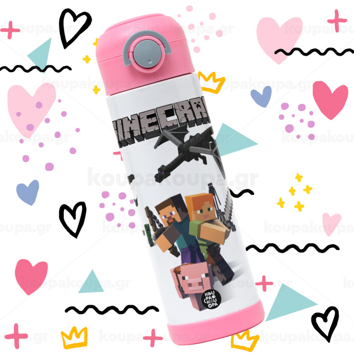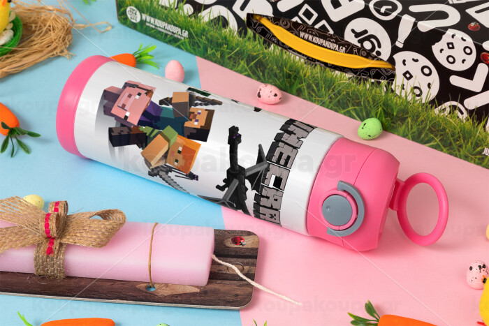 Minecraft Alex, Easter candle, Childrens hot water bottle, stainless steel, with safety straw, PINK (500ml)