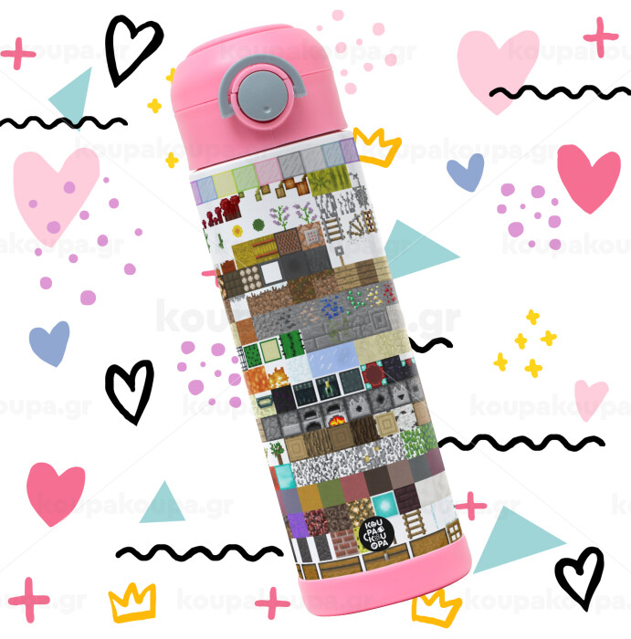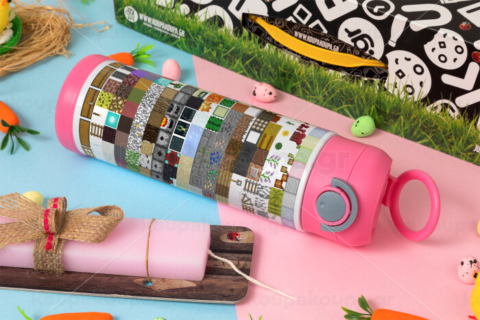 Minecraft blocks, Easter candle, Childrens hot water bottle, stainless steel, with safety straw, PINK (500ml)