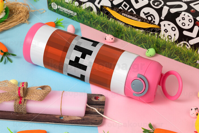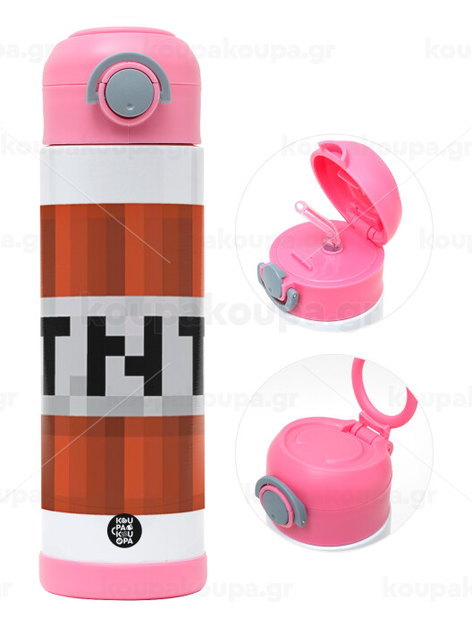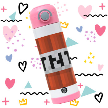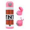 Minecraft TNT, Easter candle, Childrens hot water bottle, stainless steel, with safety straw, PINK (500ml)