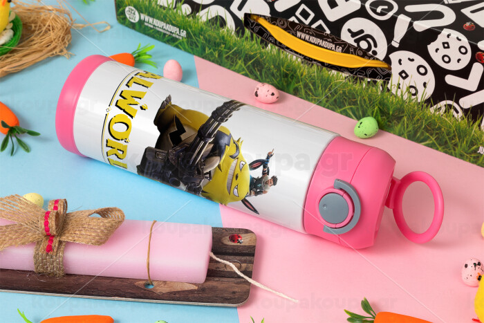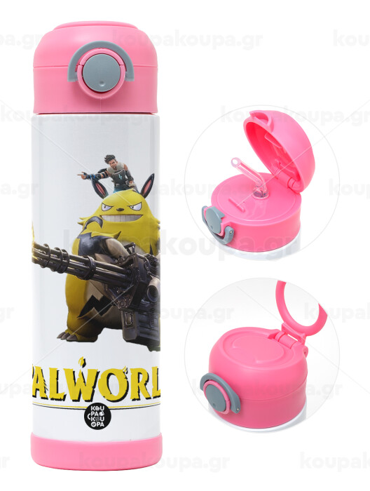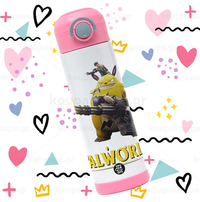 Palworld, Easter candle, Childrens hot water bottle, stainless steel, with safety straw, PINK (500ml)