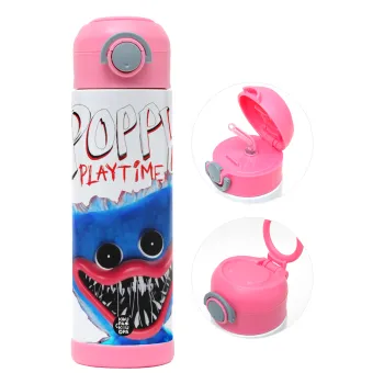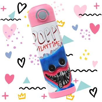Poppy Playtime Huggy wuggy, Easter candle, Childrens hot water bottle, stainless steel, with safety straw, PINK (500ml)