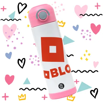 Roblox red, Easter candle, Childrens hot water bottle, stainless steel, with safety straw, PINK (500ml)
