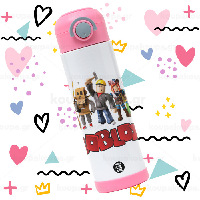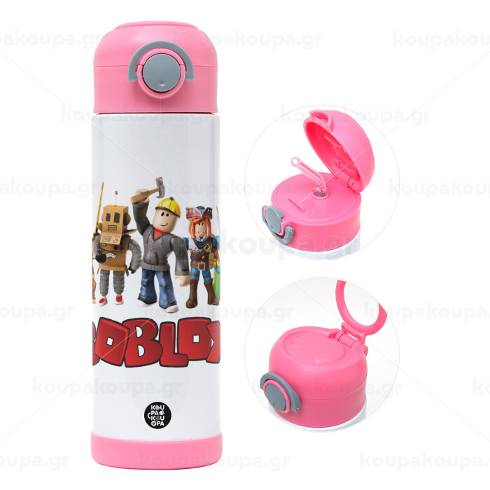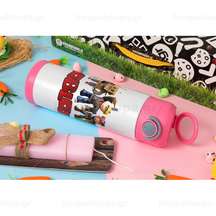 Roblox squad, Easter candle, Childrens hot water bottle, stainless steel, with safety straw, PINK (500ml)