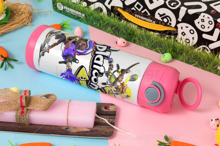 Splatoon 3, Easter candle, Childrens hot water bottle, stainless steel, with safety straw, PINK (500ml)