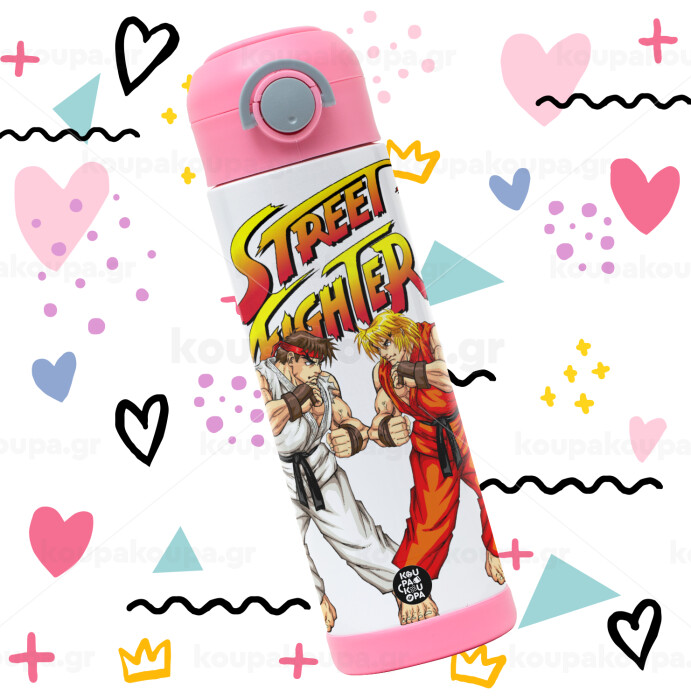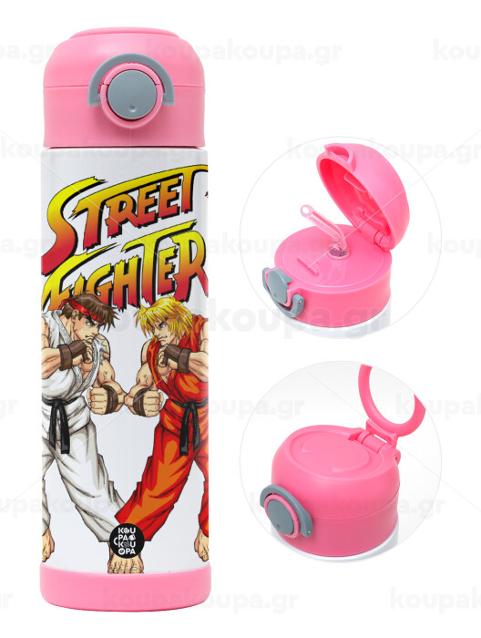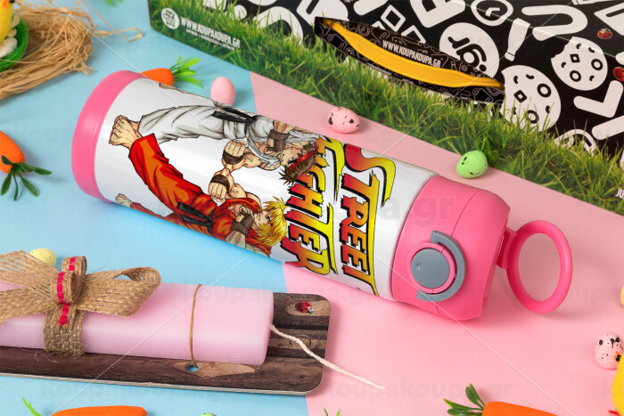 Street fighter, Easter candle, Childrens hot water bottle, stainless steel, with safety straw, PINK (500ml)