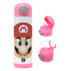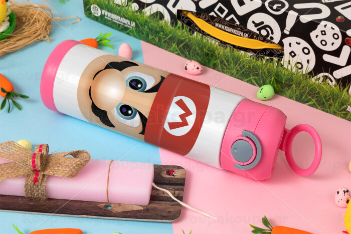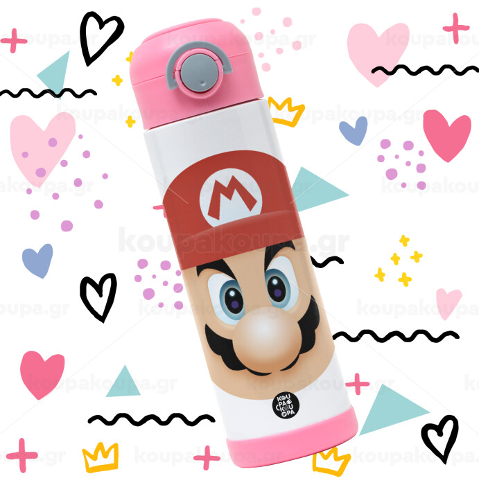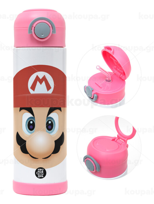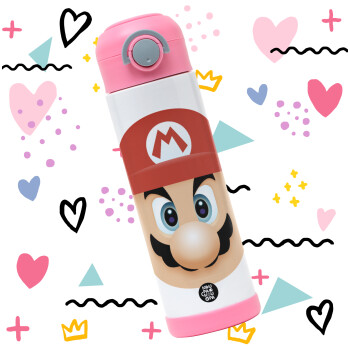 Super mario flat, Easter candle, Childrens hot water bottle, stainless steel, with safety straw, PINK (500ml)