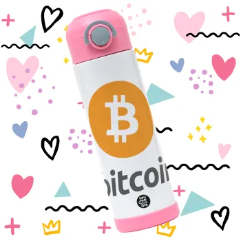Bitcoin, Easter candle, Childrens hot water bottle, stainless steel, with safety straw, PINK (500ml)