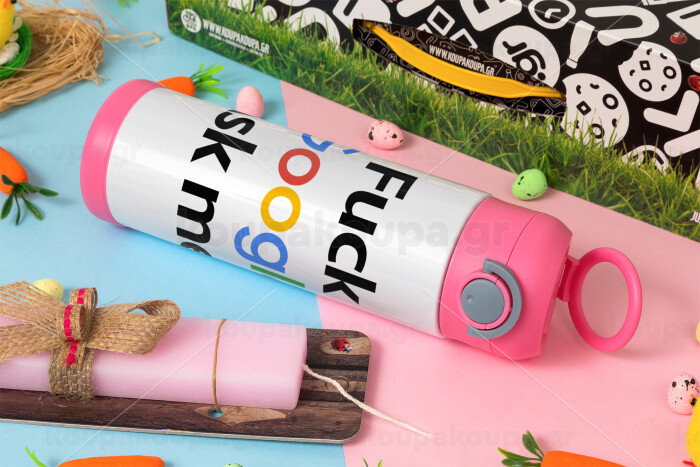 Fuck Google, Ask me!, Easter candle, Childrens hot water bottle, stainless steel, with safety straw, PINK (500ml)