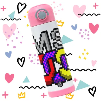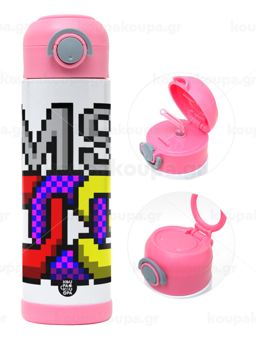 MsDos, Easter candle, Childrens hot water bottle, stainless steel, with safety straw, PINK (500ml)