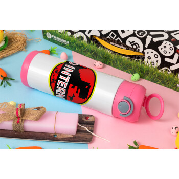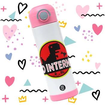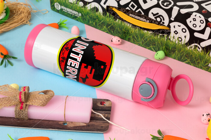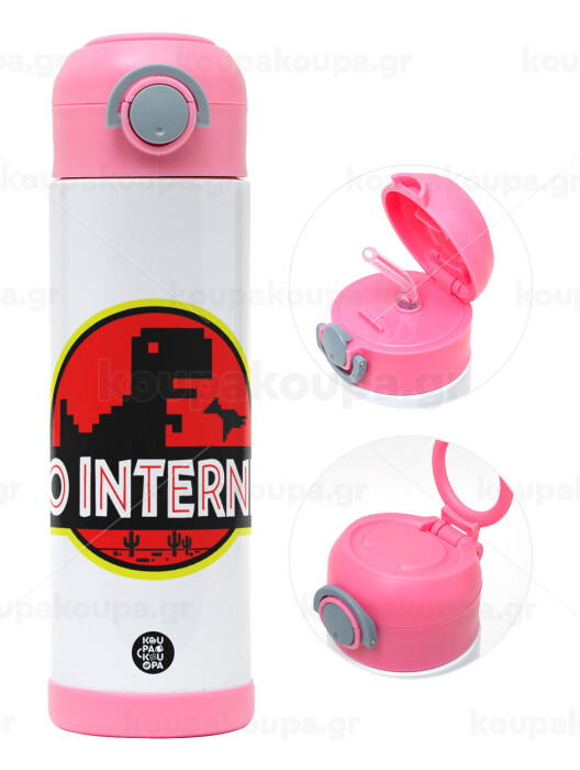 No internet, Easter candle, Childrens hot water bottle, stainless steel, with safety straw, PINK (500ml)
