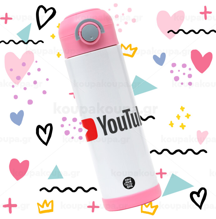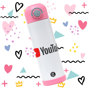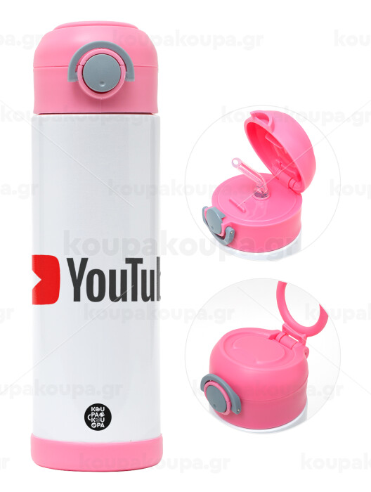 Youtube, Easter candle, Childrens hot water bottle, stainless steel, with safety straw, PINK (500ml)