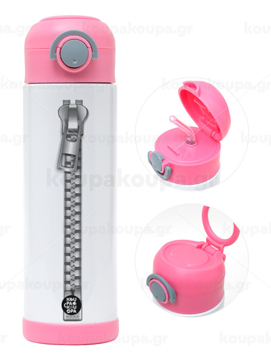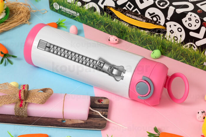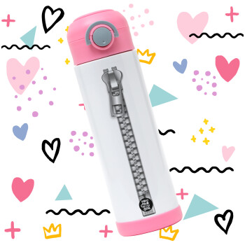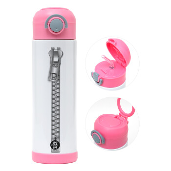 Zipper, Easter candle, Childrens hot water bottle, stainless steel, with safety straw, PINK (500ml)
