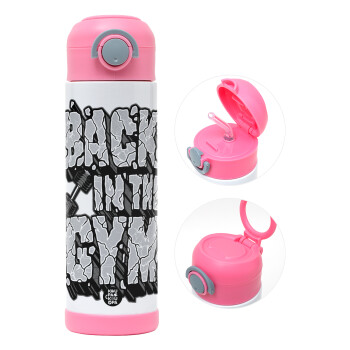 Back in the GYM, Easter candle, Childrens hot water bottle, stainless steel, with safety straw, PINK (500ml)