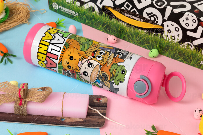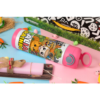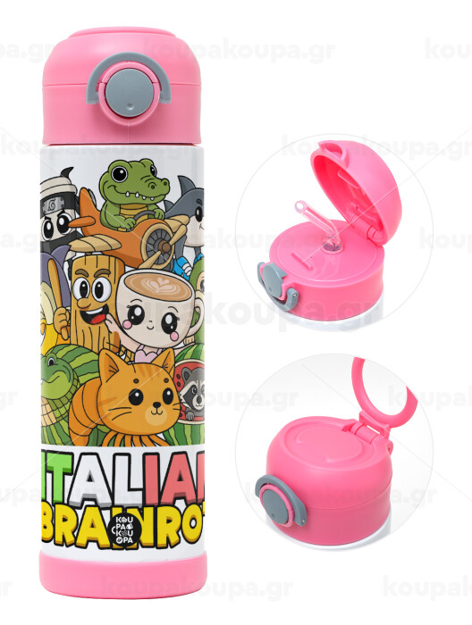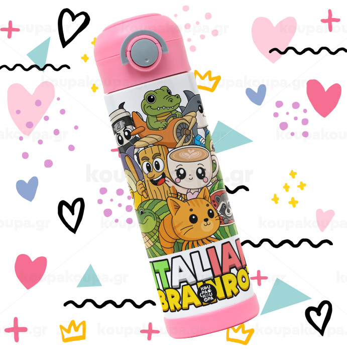 Italian Brainrot friends, Easter candle, Childrens hot water bottle, stainless steel, with safety straw, PINK (500ml)