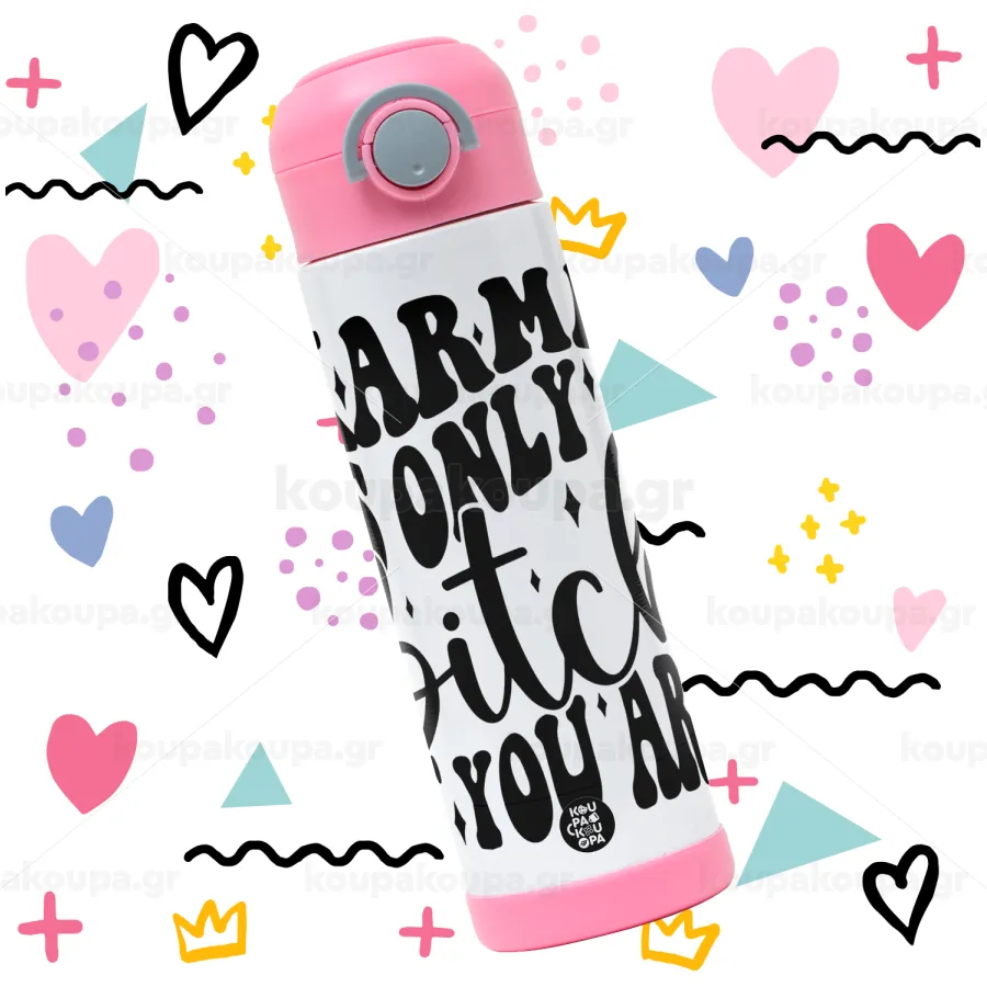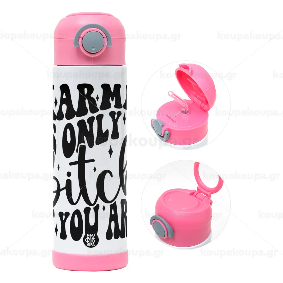 Karma is Only A Bitch if You Are, Easter candle, Childrens hot water bottle, stainless steel, with safety straw, PINK (500ml)